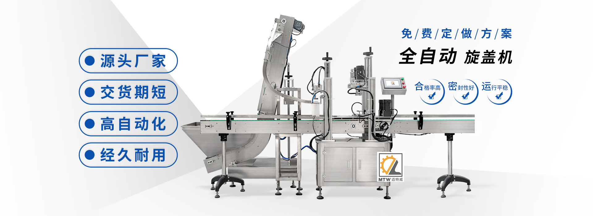 邁特威自動(dòng)化設(shè)備(天津)有限公司坐落于素有京津明珠之稱(chēng)的天津·武清區(qū),是國(guó)家高新技術(shù)企業(yè),專(zhuān)注生產(chǎn)、研發(fā)、銷(xiāo)售全自動(dòng)灌裝機(jī)、旋蓋機(jī)、封口機(jī)、貼標(biāo)機(jī)等系列產(chǎn)品,立足京津冀、服務(wù)全國(guó),遠(yuǎn)銷(xiāo)海內(nèi)外,團(tuán)隊(duì)由行業(yè)高技術(shù)人士組成,為國(guó)內(nèi)外食品、日化、糧油、醫(yī)藥等企業(yè)提供滿意的包裝解決方案。